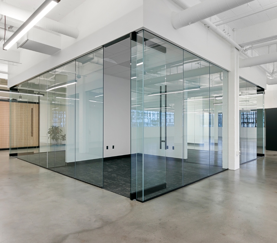 Modern and sleek glass partitions and whiteboards for offices.